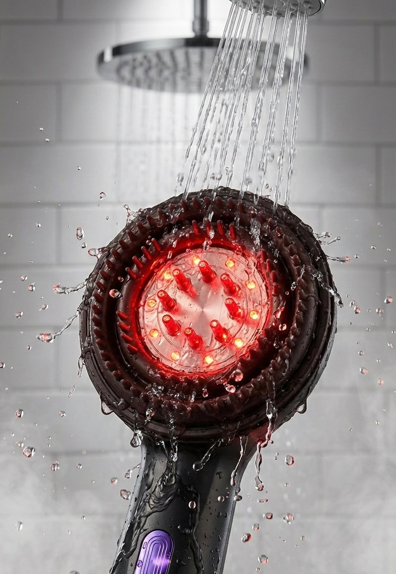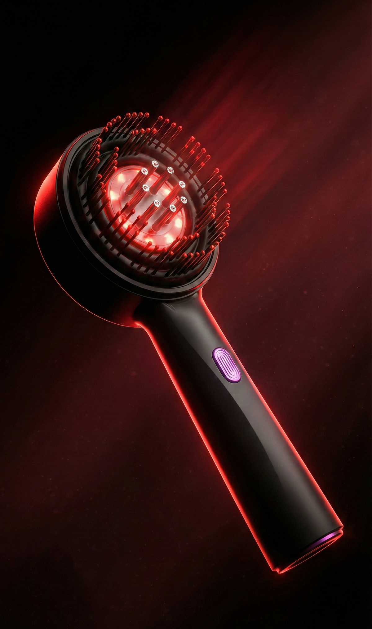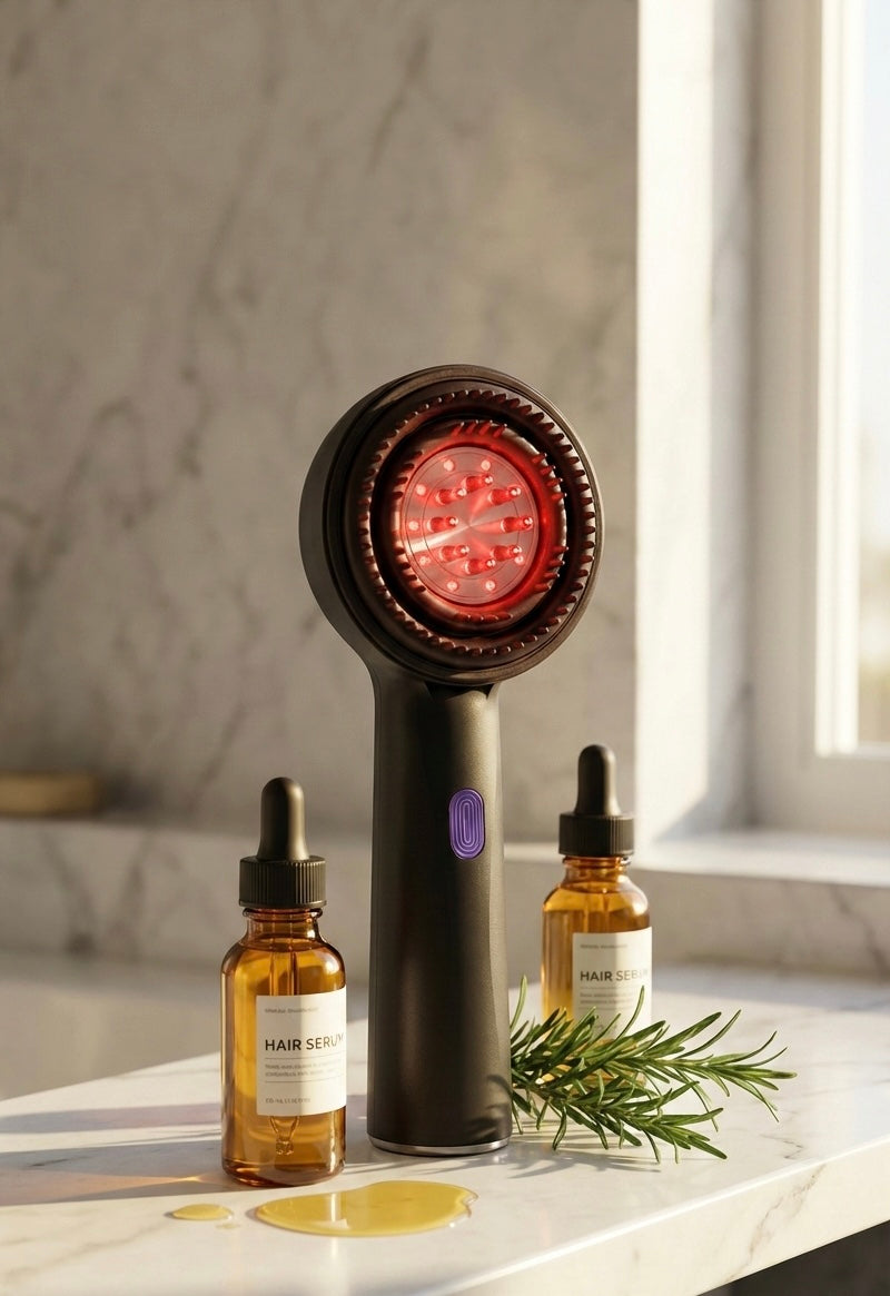 Clinical-grade Red Light Therapy & EMS technology that wakes up dormant follicles for visibly denser, stronger hair. Zero grease, just growth.